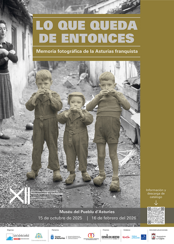 El próximo miércoles, 15 de octubre, a las 13:00 horas, inauguramos en el Muséu del Pueblu d'Asturies de Xixón la exposición Lo que queda de entonces. Memoria fotográfica de la Asturias franquista, compuesta por 54 obras de arte que no precisan explicación. Presentaremos en sociedad, además, el catálogo homónimo, con un estudio preliminar, y, por el mismo precio, o sea, de balde, un hipnótico audiovisual compuesto por una selecta antología de fotografías del periodo, 240 en total. Exposición, catálogo y audiovisual forman parte del programa de actividades elaborado con motivo del XII Encuentro Internacional sobre Investigaciones del Franquismo, que se celebrará en la Universidad de Oviedo entre el 5 y el 7 de noviembre, ha sido promovido por la Fundación Juan Muñiz Zapico y patrocinado, entre otros, por el Instituto de la Memoria Democrática del Principado de Asturias. Ninguna persona sensata se lo perdería.