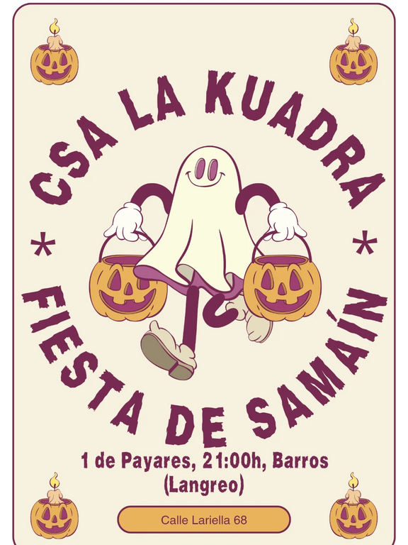 El 1 de payares vamos hacer una fiestuka samaín en la kuadra. Kien venga kon disfraz tien un jarru keimada.músika,karaoke y billar pa kien se aburra!!