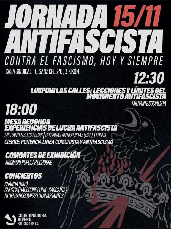Mesa redonda: esperiencies de llucha antifascista con militantes del movimientu socialista, de les BAF y del FUSOA.