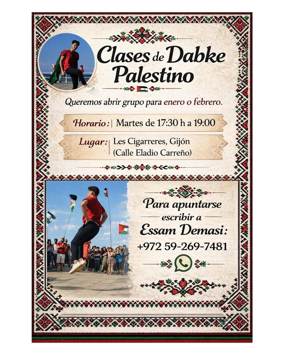 Quieren montar un grupo con profe palestino. ¿Te apuntas? Toda la inf en el cartel.
