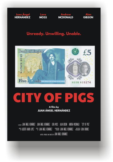 El cortometraje City of pigs (España, Reino Unido, 2025, 24 min.), dirigido por Juan Ángel Hernández, trata sobre un rockero retirado llamado Lenny Hicks que, en un futuro donde los líderes mundiales son elegidos por sorteo, se convierte en el Primer Ministro del Reino Unido contra su voluntad. Al no poder renunciar, decide convertirse en el peor líder posible, convirtiendo esta situación en una sátira política.