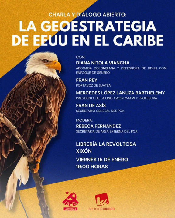 Este viernes tendremos una charla con posterior debate abierto al publico sobre "La geoestrategia en EEUU en el Caribe". Un tema muy actual y que creemos necesario abordar desde una óptica antiimperialista y de respeto a la soberanía de los pueblos.