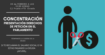 El próximo 20 de febrero día de la Justicia social acudiremos al parlamento asturiano a solicitar que se trate en la Junta General del Principado la paralización de las Reclamaciones de Cobros indebidos motivadas por la gestión del Salario Social Básico por parte de la Consejería de Derechos Sociales y Bienestar del Principado de Asturias y su Dirección General de Gestión de Derechos Sociales.