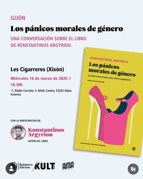 Este miércoles a las 18:30 en Les Cigarreres contaremos con la presentación del libro "Los pánicos morales de género: Las personas trans como chivo expiatorio", de Konstantinos Argyriou.